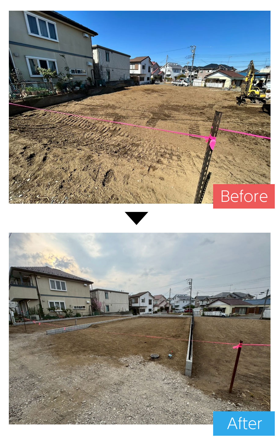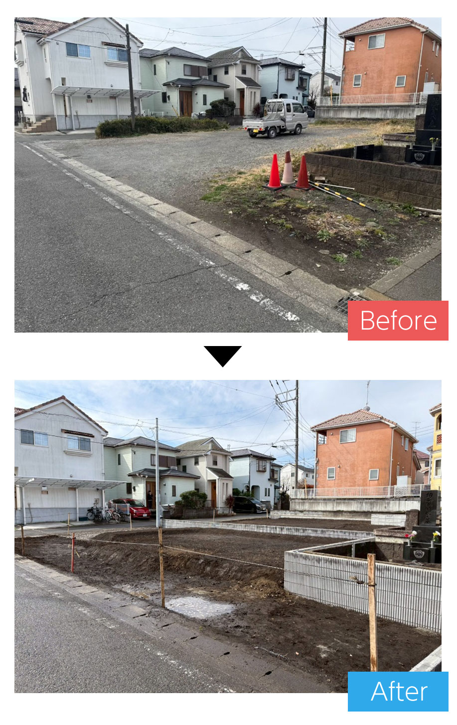 2023年度 施工事例 2023年度1月 座間市東原6区画 2023年度2月 相模原市南区東大沼7区画 2023年度3月 相模原市南区新戸21区画 2023年度3月 相模原市南区麻溝台13区画 2023年度4月 八王子市館町11区画 2023年度4月 町田市成瀬8区画 2023年度4月 淵野辺本町14区画3期 2023年度5月 淵野辺本町16区画 2023年度5月 磯部5区画 2023年度6月 座間市栗原中央8区画 2023年度6月 秦野市緑町6区画 2023年度7月 上九沢駐車場 3箇所 2023年度8月 南林間19棟 2023年度9月 大野台7棟 2023年度10月 座間市西栗原17区画 2023年度11月 相模原市南区磯部9区画 2023年度11月 相模原市南区磯部10区画 2023年度12月 上溝4区画 2023年度12月 磯部3区画道路位置指定
