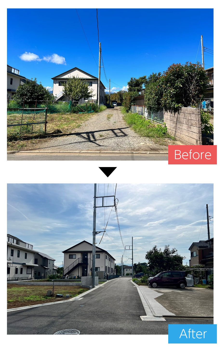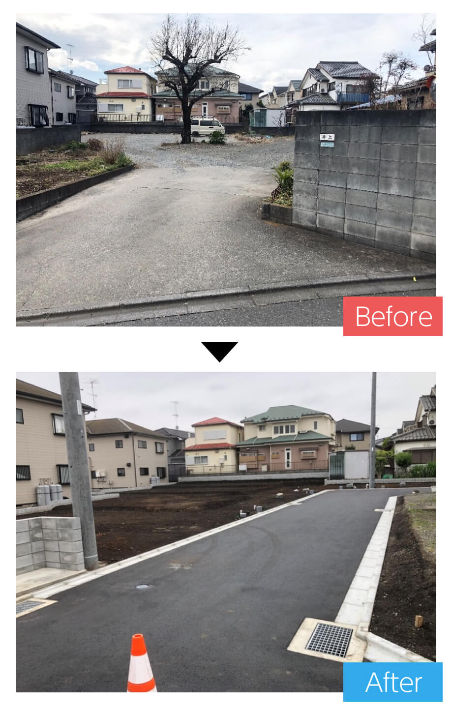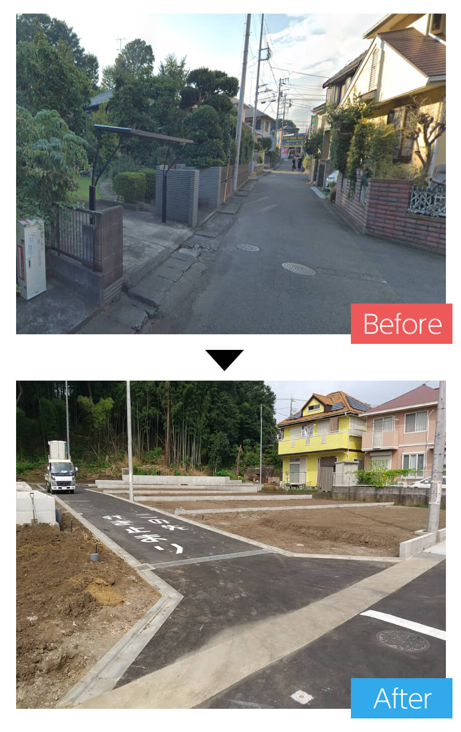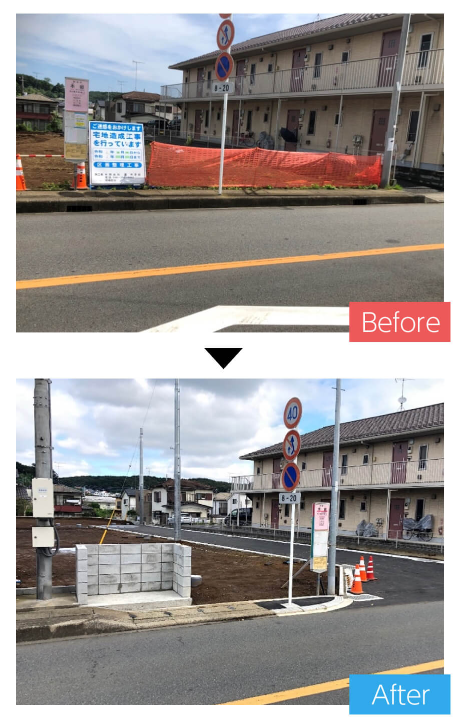 2023年度 施工事例 2023年度1月 座間市東原6区画 2023年度2月 相模原市南区東大沼7区画 2023年度3月 相模原市南区新戸21区画 2023年度3月 相模原市南区麻溝台13区画 2023年度4月 八王子市館町11区画 2023年度4月 町田市成瀬8区画 2023年度4月 淵野辺本町14区画3期 2023年度5月 淵野辺本町16区画 2023年度5月 磯部5区画 2023年度6月 座間市栗原中央8区画 2023年度6月 秦野市緑町6区画 2023年度7月 上九沢駐車場 3箇所 2023年度8月 南林間19棟 2023年度9月 大野台7棟 2023年度10月 座間市西栗原17区画 2023年度11月 相模原市南区磯部9区画 2023年度11月 相模原市南区磯部10区画 2023年度12月 上溝4区画 2023年度12月 磯部3区画道路位置指定