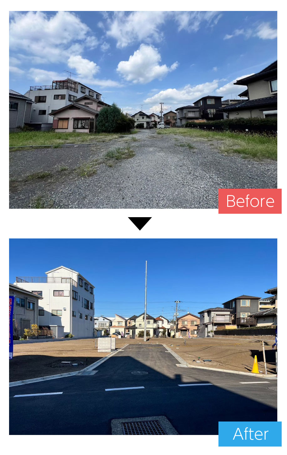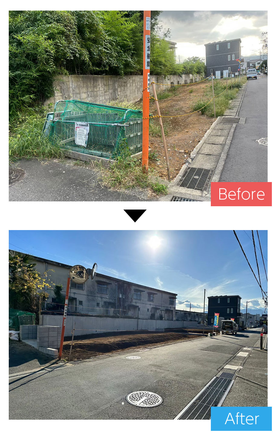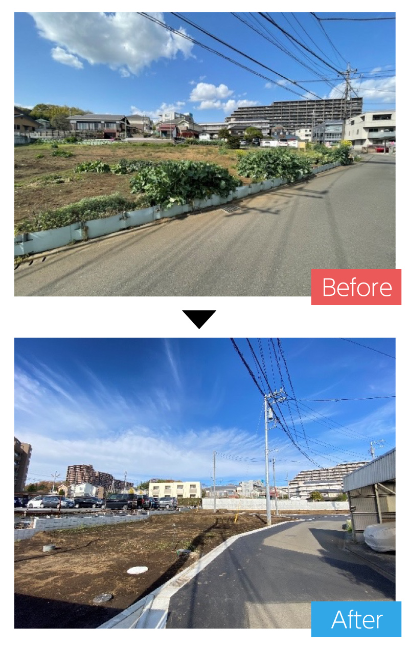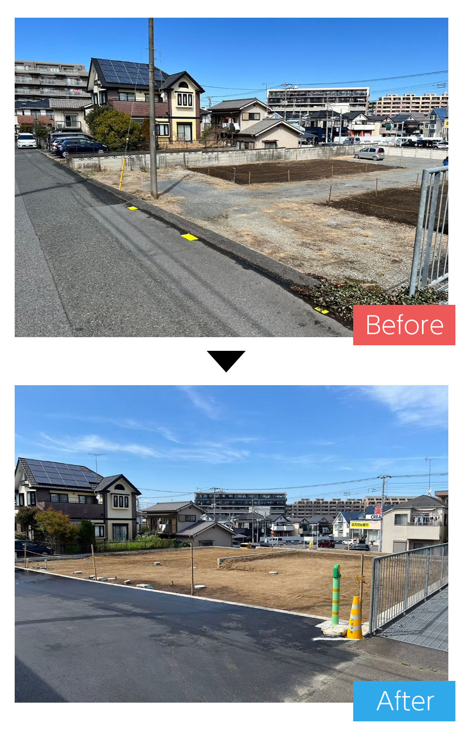 2023年度 施工事例 2023年度1月 座間市東原6区画 2023年度2月 相模原市南区東大沼7区画 2023年度3月 相模原市南区新戸21区画 2023年度3月 相模原市南区麻溝台13区画 2023年度4月 八王子市館町11区画 2023年度4月 町田市成瀬8区画 2023年度4月 淵野辺本町14区画3期 2023年度5月 淵野辺本町16区画 2023年度5月 磯部5区画 2023年度6月 座間市栗原中央8区画 2023年度6月 秦野市緑町6区画 2023年度7月 上九沢駐車場 3箇所 2023年度8月 南林間19棟 2023年度9月 大野台7棟 2023年度10月 座間市西栗原17区画 2023年度11月 相模原市南区磯部9区画 2023年度11月 相模原市南区磯部10区画 2023年度12月 上溝4区画 2023年度12月 磯部3区画道路位置指定