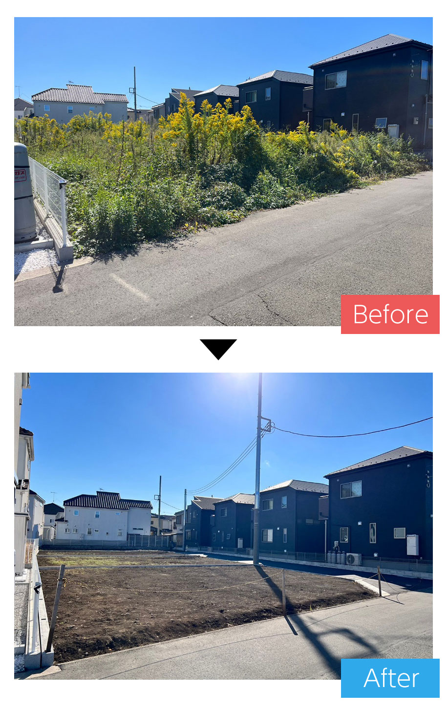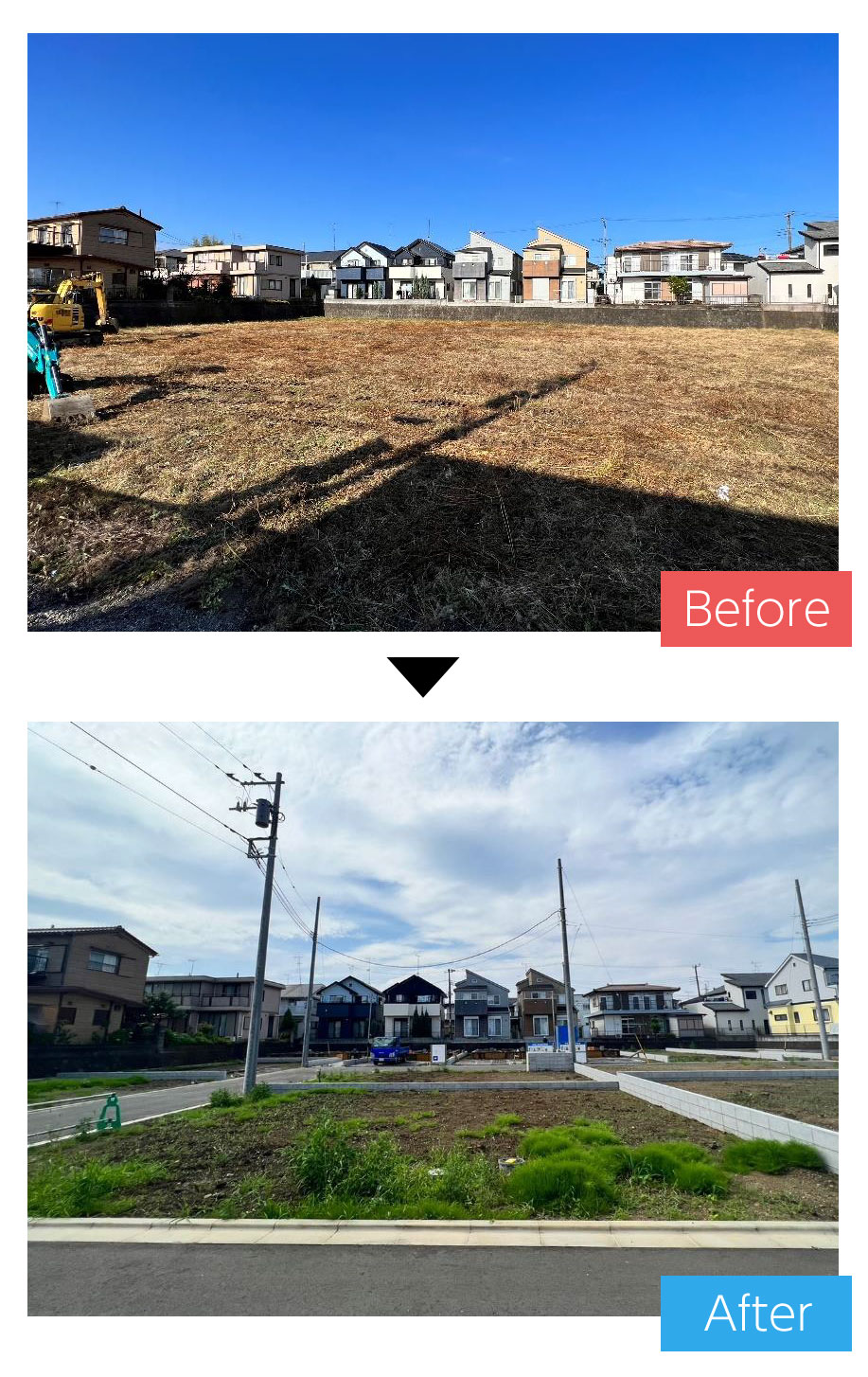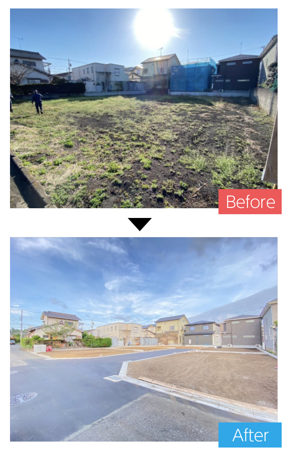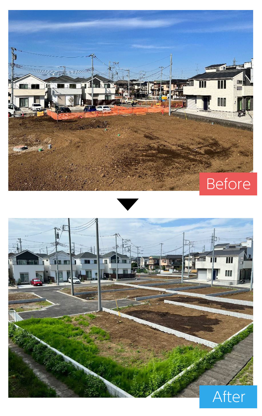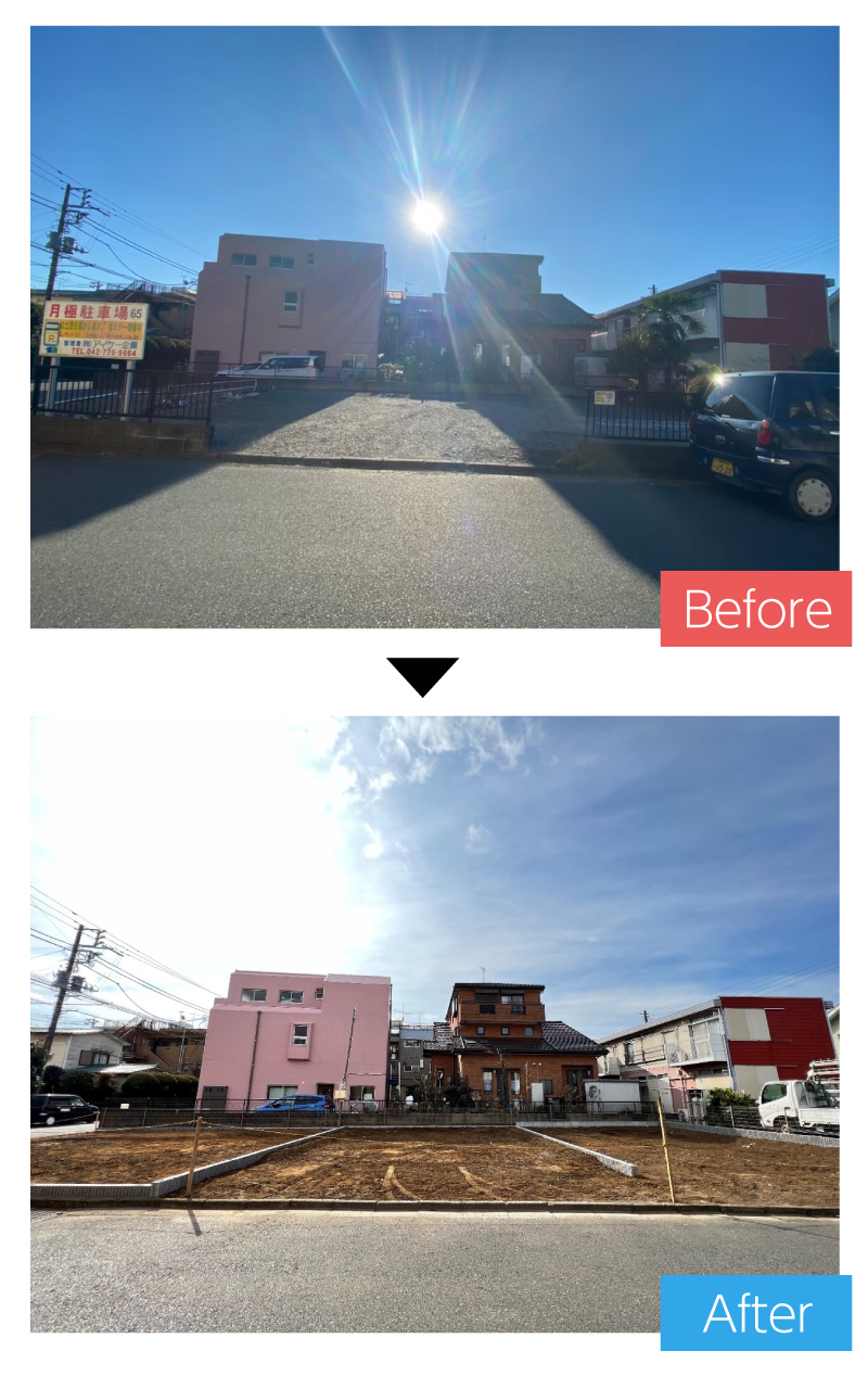 2024年度 施工事例 2024年度1月 町田市相原町6区画 2024年度1月 大和市上和田2区画 2024年度2月 相模原市南区下溝8区画 2024年度3月 相模原市中央区松が丘23区画 2024年度3月 相模原市中央区松が丘23区画 2024年度4月 町田市本町田16区画 2024年度5月 八王子市長房町8区画 2024年度6月 八王子市台町7区画 2024年度6月 海老名市社家8棟 2024年度7月 相模原市南区磯部6区画 2024年度8月 大和市下和田14区画 2024年度9月 町田市成瀬台17区画 2024年度10月 相模原市南区新磯野5棟区画 2024年度11月 町田市野津田町10区画 2024年度11月 町田市野津田町10区画 ^ 2024年度11月 大和市南林間18区画 2024年度11月 大和市南林間18区画 2024年度12月 下鶴間7区画 2024年度12月 藤沢市石川9区画