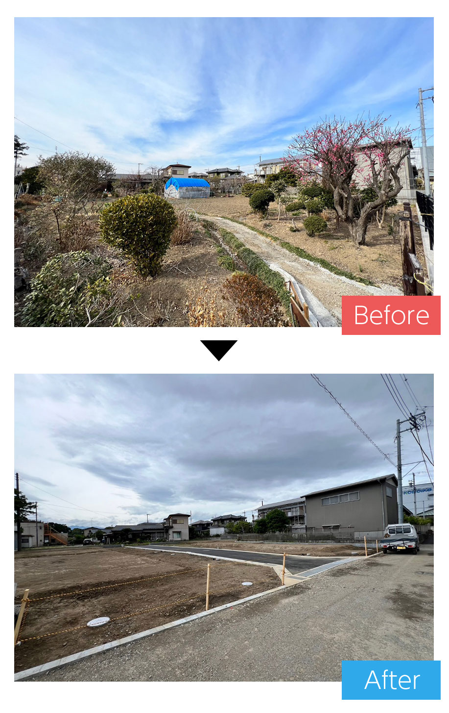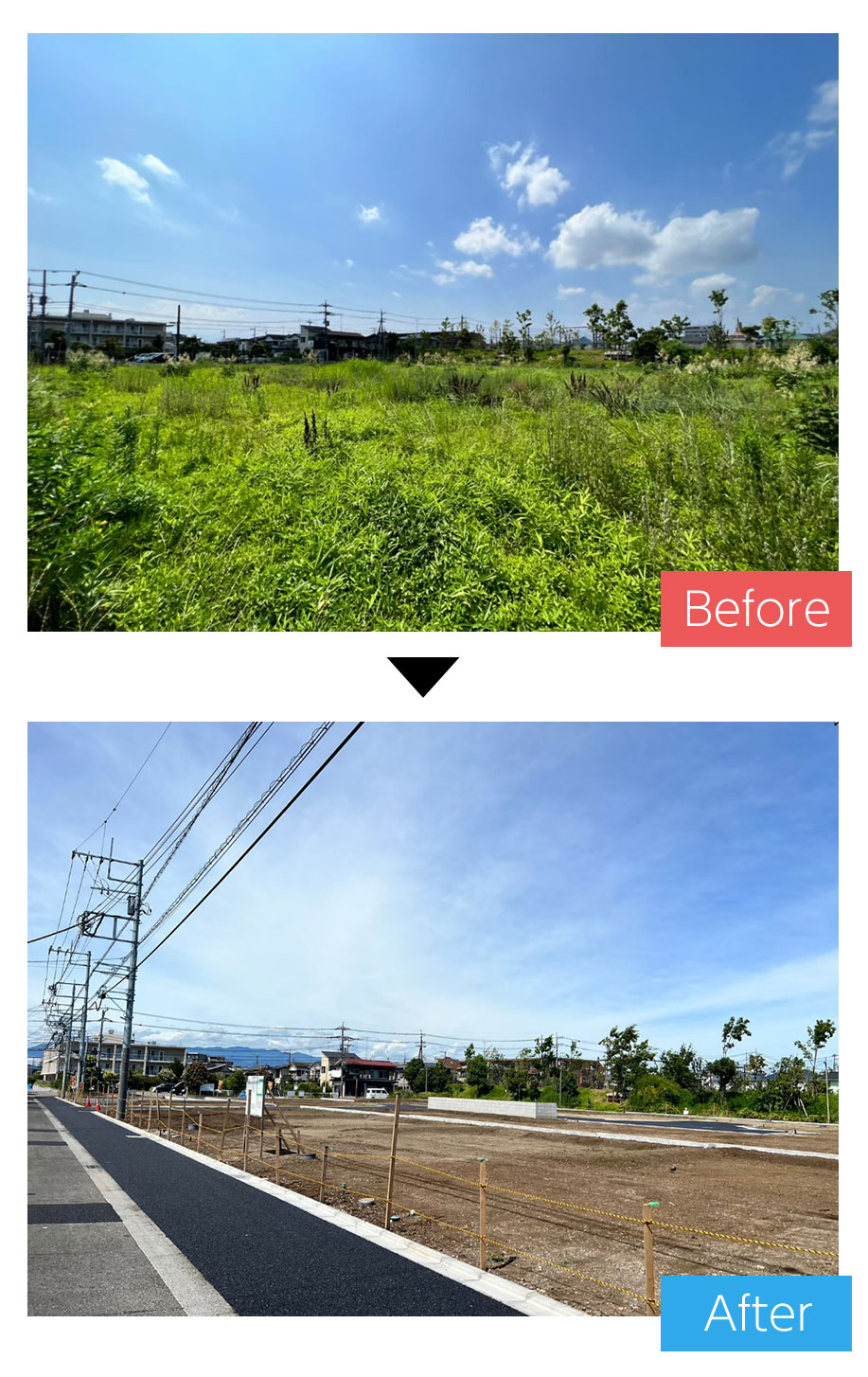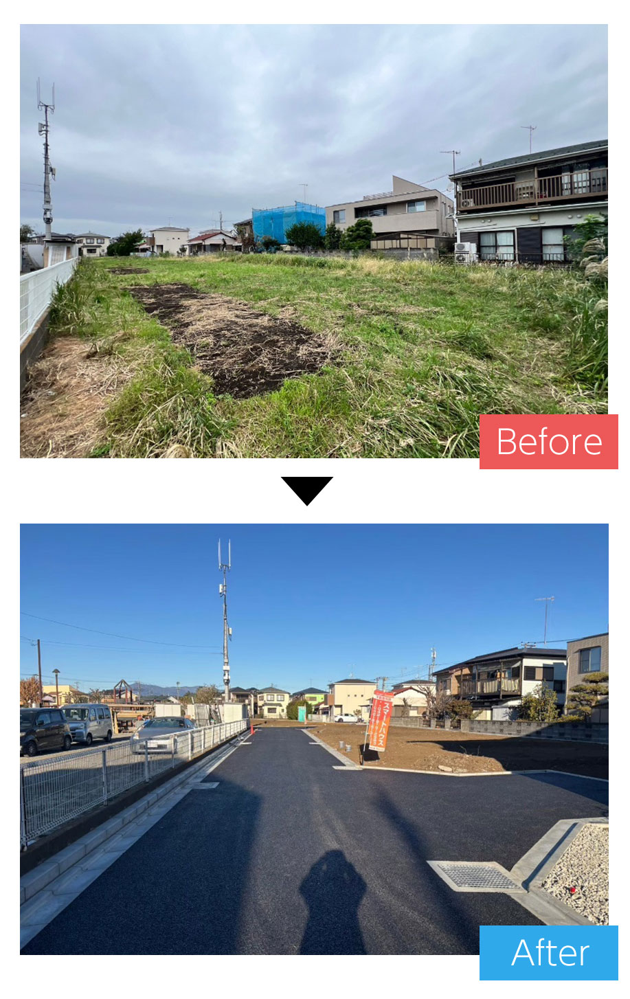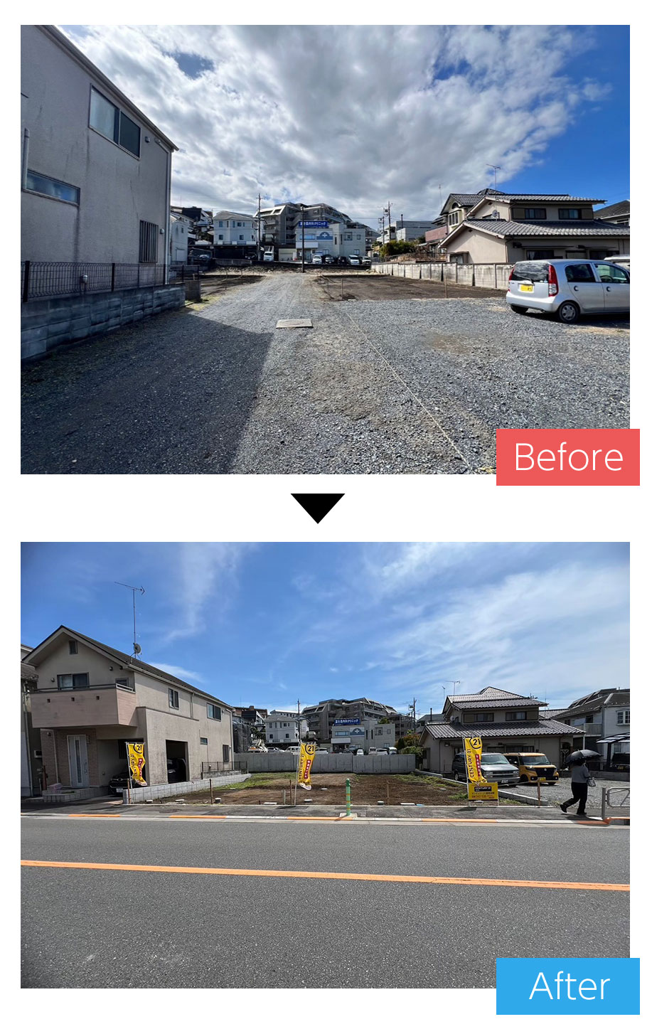 2024年度 施工事例 2024年度1月 町田市相原町6区画 2024年度1月 大和市上和田2区画 2024年度2月 相模原市南区下溝8区画 2024年度3月 相模原市中央区松が丘23区画 2024年度3月 相模原市中央区松が丘23区画 2024年度4月 町田市本町田16区画 2024年度5月 八王子市長房町8区画 2024年度6月 八王子市台町7区画 2024年度6月 海老名市社家8棟 2024年度7月 相模原市南区磯部6区画 2024年度8月 大和市下和田14区画 2024年度9月 町田市成瀬台17区画 2024年度10月 相模原市南区新磯野5棟区画 2024年度11月 町田市野津田町10区画 2024年度11月 町田市野津田町10区画 ^ 2024年度11月 大和市南林間18区画 2024年度11月 大和市南林間18区画 2024年度12月 下鶴間7区画 2024年度12月 藤沢市石川9区画